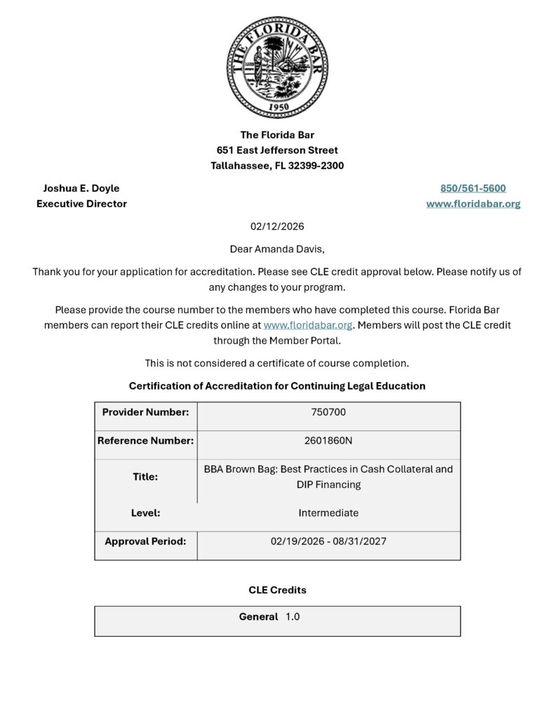 Brown Bag: Best Practices in Cash Collateral and DIP Financing