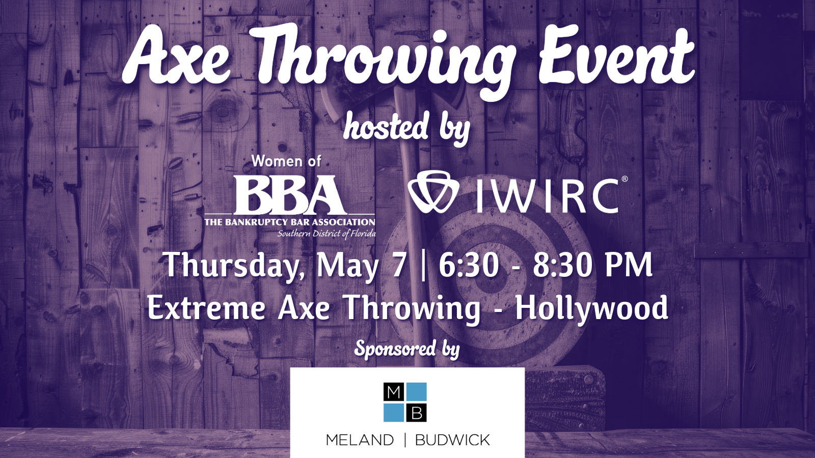 Women of BBA + IWIRC: Axe Throwing May 7 @ 6:30 pm - 8:30 pm Extreme Axe Throwing - Hollywood 2046 Hollywood Blvd, Hollywood, FL, United States Get Tickets Free 16 tickets left